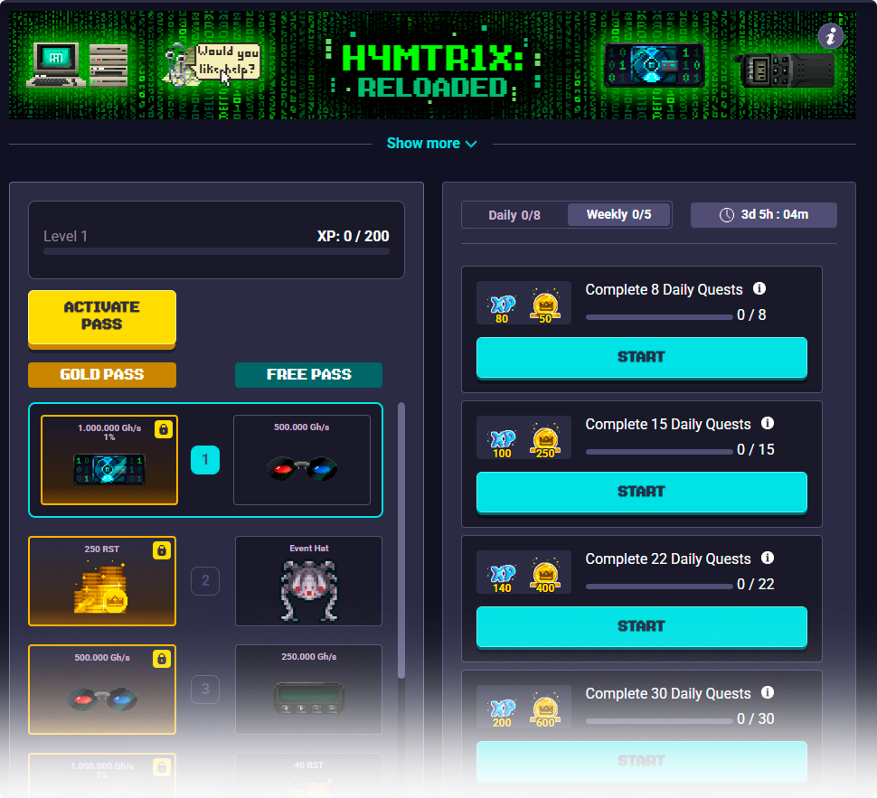 Hackers, code, chaos, and power! The new season miners are here, ready to bend the rules and take control. These are the miners you can obtain in the Season Pass.